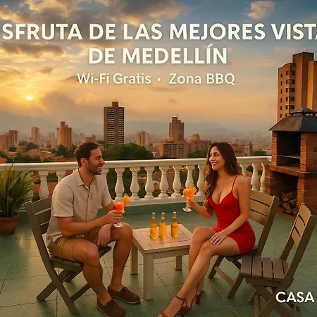 De 2-slaapkamer Casa Hevenie, Amplia, Familiar, Comoda Y Bien Ubicada Medellín bevindt zich op 6 minuten wandelen van Parroquia Nuestra Senora del Rosario de La Piedra en biedt een terras met uitzicht over de stad.